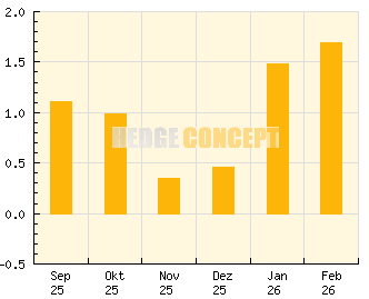 Sehr breite Streuung im Portfolio sorgt für eine Reduzierung der Schwankungen. Die Aktienquote liegt bei maximal 35%. Attraktive Erträge werden bei einer Schwankungsbreite erzielt, die unterhalb der Hälfte des Aktienmarktes liegt.